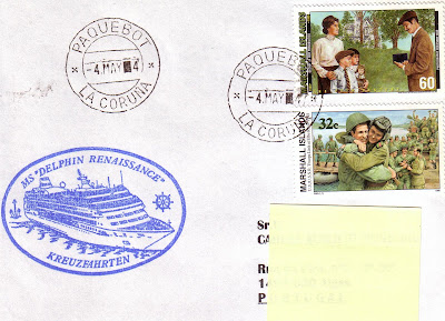 Cover do MS DELPHIN RENAISSANCE" - 04.05.2004 - PAQUEBOT A Coruña - com maravilhosos selos das Marshall Islands