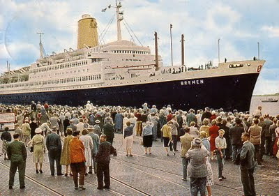 O belo da foto é a multidão que se encontra no cais assistindo à partida. Era todo um cerimonial de partidas e chegadas com familiares e amigos ou simples aficionados maritimos que contemplavam as despedidas. Pena seja que actualmente as pessoas sejam vistas como impecilhos, incómodas e nefastas, colocando-as fora das zonas de acostagem.